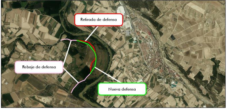 - Reducir daños en zonas no urbanas para una avenida de periodo de retorno de 10 años, que en este tramo equivale a un caudal de 1.780 m3/s en el río Ebro y de 300 m3/s en el río Ega.