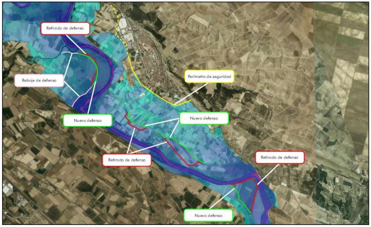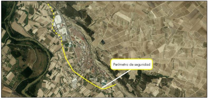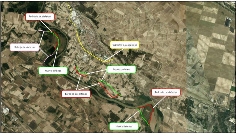 Se propone la construcción de un perímetro de seguridad (figura 14) que rodee la zona urbana y se configure como una segunda defensa frente a las avenidas del Ebro. Además, esta defensa estará habilitada para permitir la inspección del motarrón durante el paso de las avenidas en unas condiciones de seguridad adecuadas para las personas involucradas en los trabajos.
