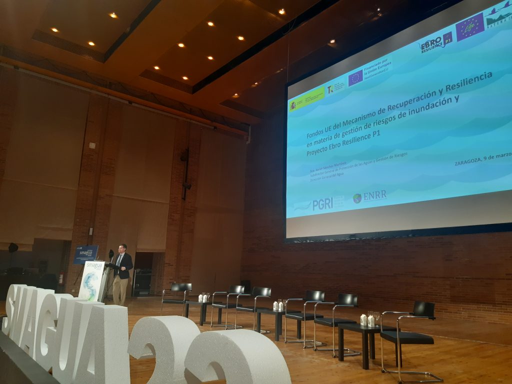 En el apartado técnico, donde se desarrollan jornadas de deliberación sobre los distintos aspectos de la gestión del agua, se incluyó el evento “La gestión de los riesgos de inundación en los municipios”, organizado por el Gobierno de Aragón, a través del Instituto Aragonés del Agua, en el que tuvieron un gran protagonismo las acciones de la Estrategia Ebro Resilience.