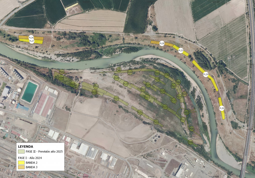 La Fase 2 de la renaturalización se realizará en la margen derecha y está prevista su ejecución una vez recuperado el meandro, una intervención pendiente actualmente de disponibilidad de los terrenos.