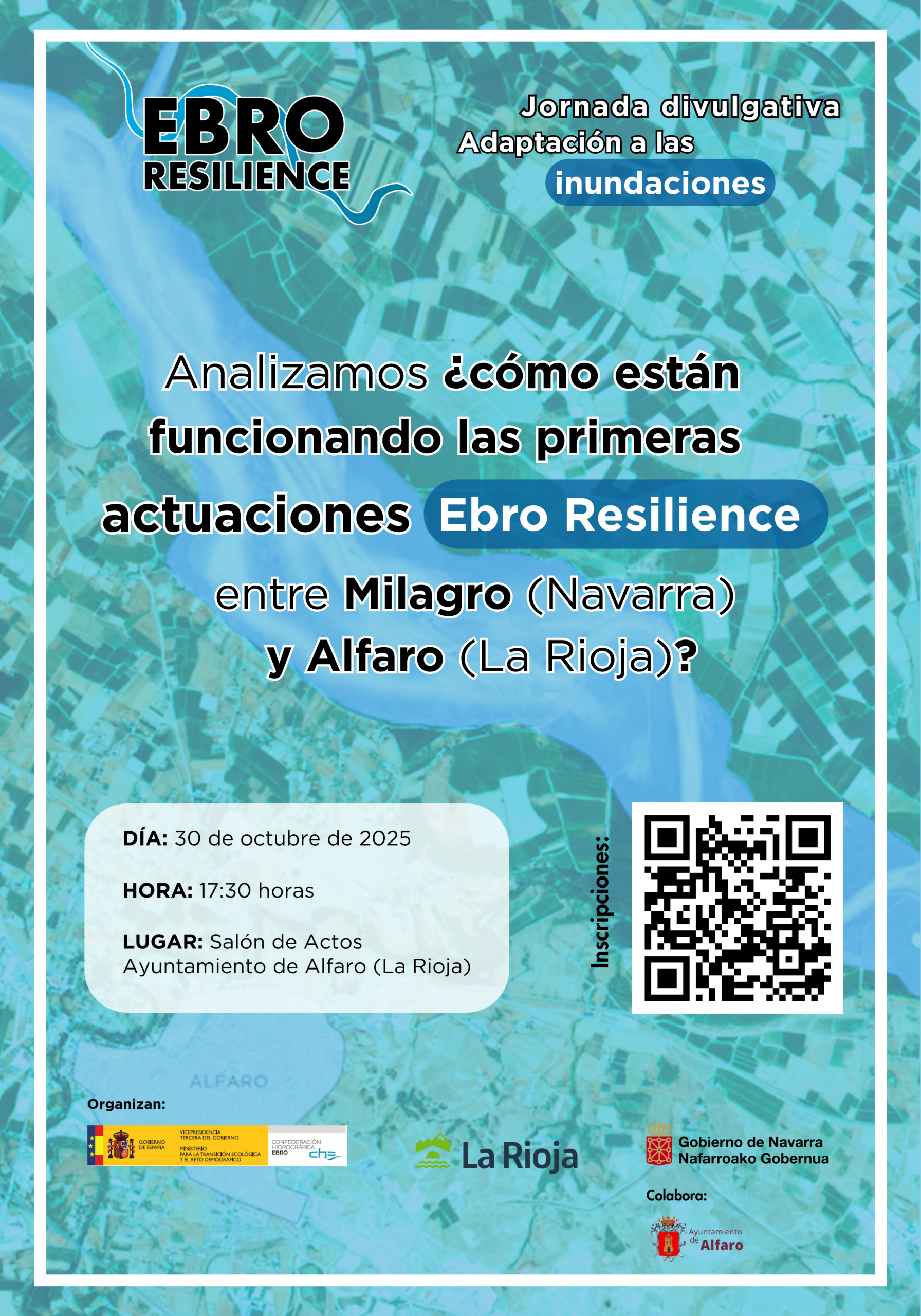 La Estrategia Ebro Resilience tiene como objetivo reducir los daños por inundaciones en el tramo medio del río Ebro (entre Logroño y La Zaida) y los tramos bajos de sus afluentes. Desde el año 2020 se han venido desarrollado estudios de detalle y simulaciones de distintas alternativas para la mitigación del riesgo de inundación en los tramos con mayor afección por inundaciones. Tras los estudios, se están llevando a cabo talleres deliberativos en los distintos tramos, con partes interesadas y público en general, sobre las alternativas y ordenación de usos futuros en aquellas zonas en las que se proponen actuaciones. Tras los talleres se han empezado a implementar actuaciones en distintos tramos de río.