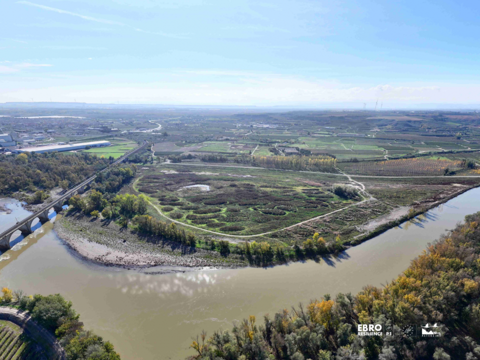 A través de la la FASE 1 de adaptación al riesgo de inundación de una zona agrícola del Proyecto LIFE Ebro Resilience P1 que ha eliminado estrechamientos del río en la Mejana del Conde y el Meandro de Aguilar