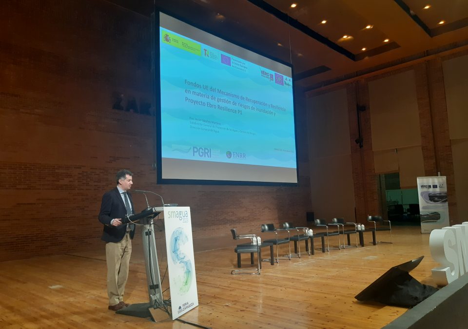 Por su parte, el subdirector general de Protección de las Aguas y Gestión de Riesgos de la Dirección General del Agua del Miteco, Javier Sánchez, explicaba los fondos de la Unión Europea del Mecanismo de Recuperación y Resiliencia, destacando, además, que las obras más importantes de restauración fluvial de España se están desarrollando en la cuenca del Ebro.