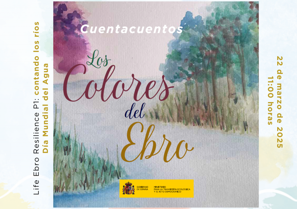 El mismo sábado, día 22 de marzo, realizaremos una actividad para toda la familia con el cuentacuentos “Los Colores del Ebro” basado en el libro editado por el Proyecto LIFE Ebro Resilience P1, en concreto a través del Ministerio para la Transición Ecológica y el Reto Demográfico, MITECO.