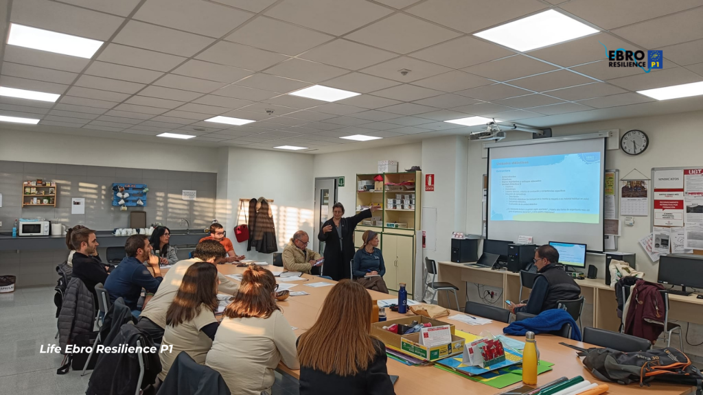 The LIFE Ebro Resilience P1 Project organized a conference, mainly aimed at stakeholders of the Irrigation Community of La Huerta del Ebro, to inform about the measures proposed to reduce damage in extraordinary floods and that have European funding and the state and regional administrations.