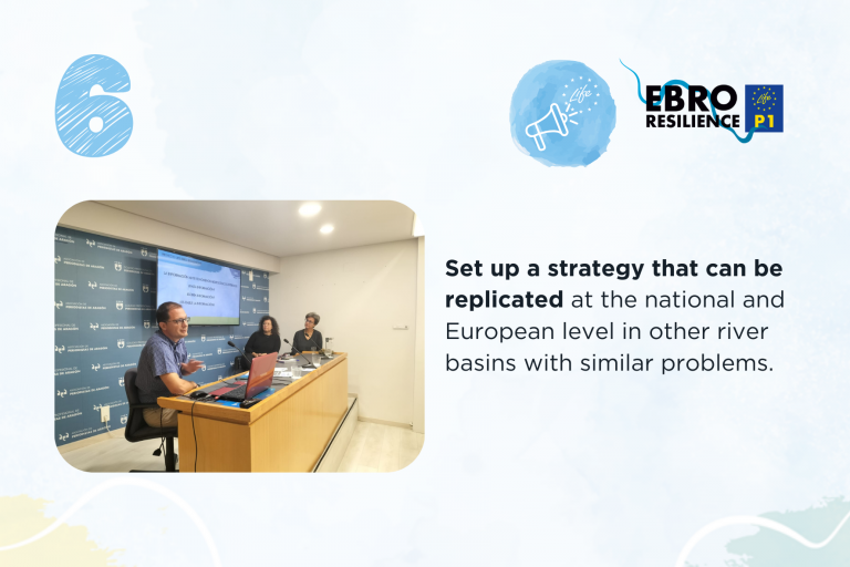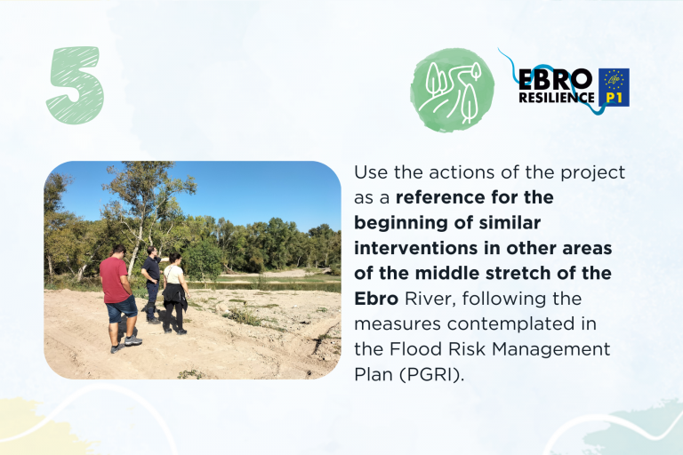 We seek to ensure that the population of the Ebro riverbank and its economic activities coexist with an Ebro in a good state of conservation, reducing the effects of the inevitable floods.