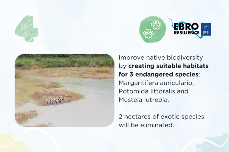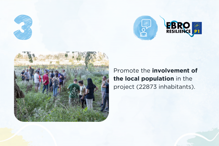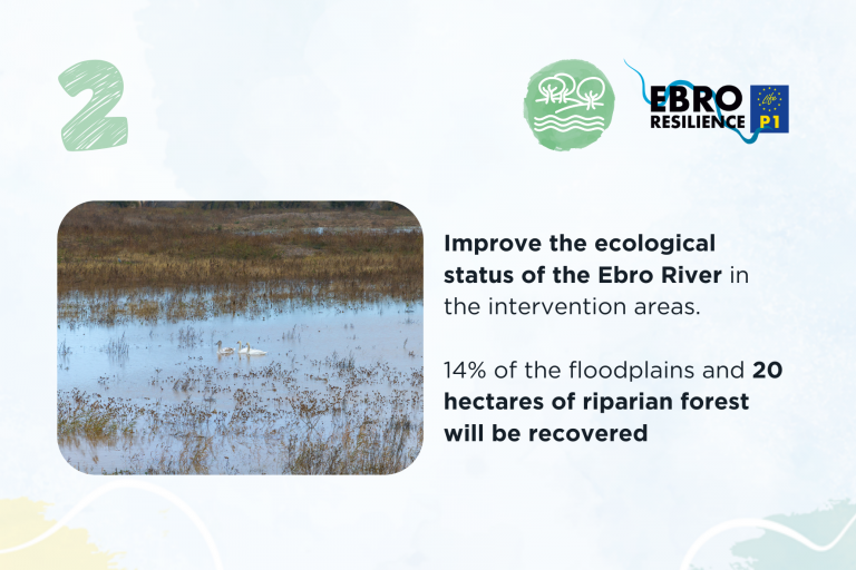 The main objective of the LIFE Ebro Resilience P1 project is to make the middle stretch of the Ebro River more resilient to floods, reducing the damage caused by those and improving the ecological status and local biodiversity.