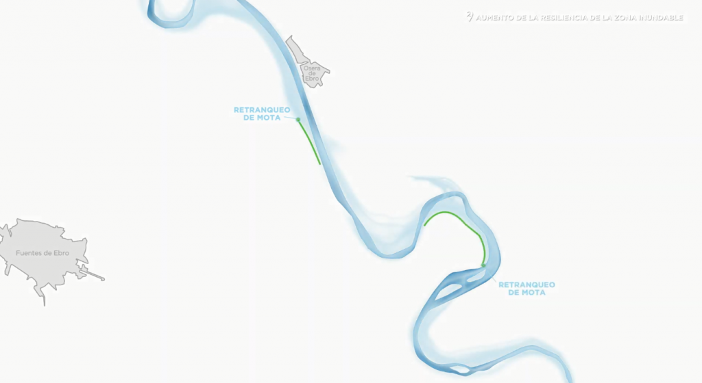 Ebro River as it passes through Osera de Ebro and Fuentes de Ebro (Zaragoza): a novel intervention is proposed to make an intensively cultivated agricultural area compatible with the passage of floods.