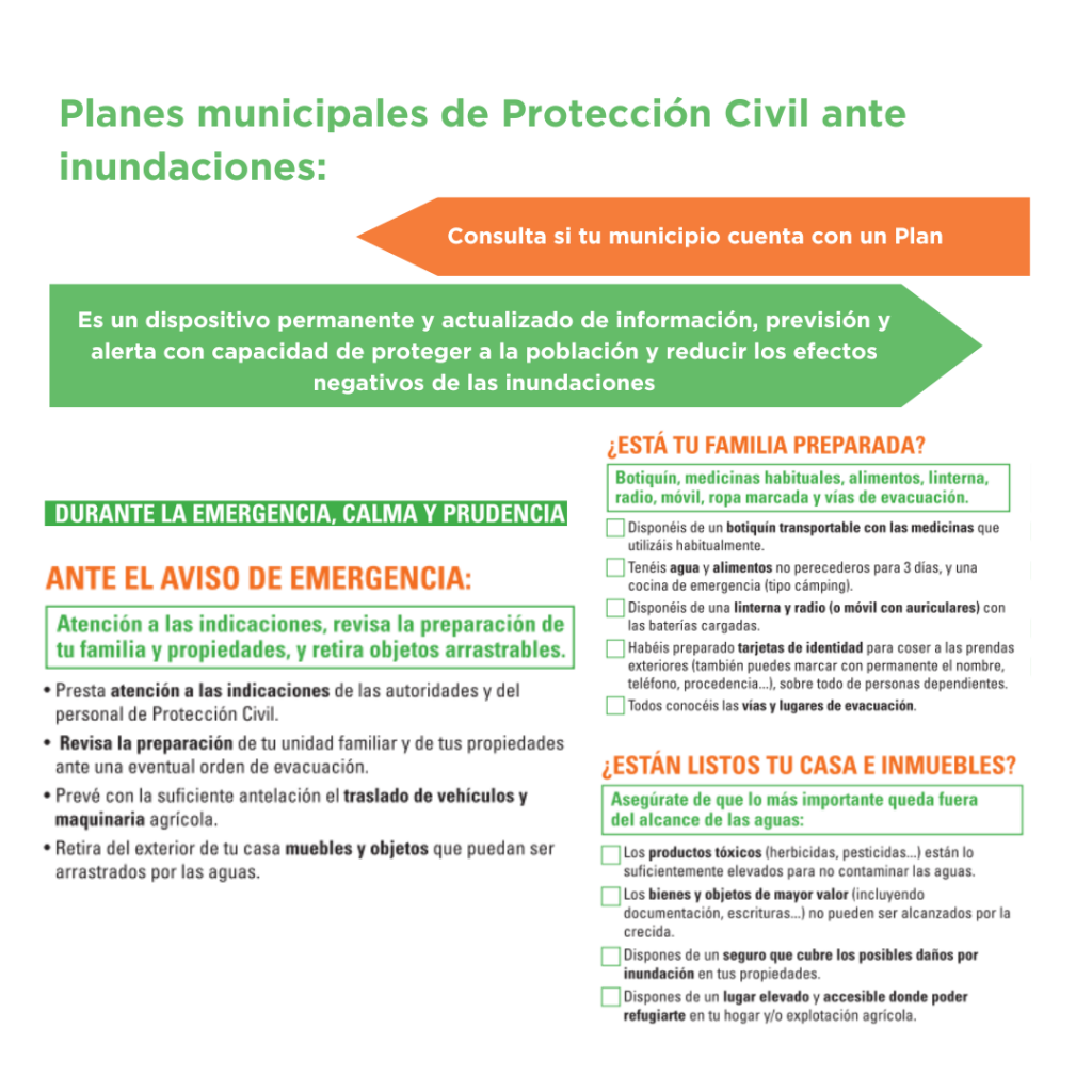 If your town is in an area considered at risk of flooding, it is interesting to check if the municipality has this Plan which, among other issues, includes: