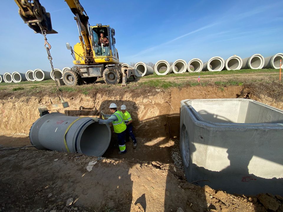 20 February, 2024 20 February, 2024Installing the new pipeline that adapts the irrigation system in Fuentes de Ebro to the risk of flooding.The laying of the new concrete pipe, with a total length of 2,300 meters in this phase, which moves this infrastructure away from the riverbed in the Huerta del Ebro Irrigation Community, is in progress.