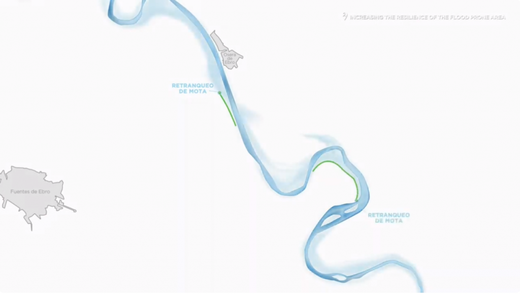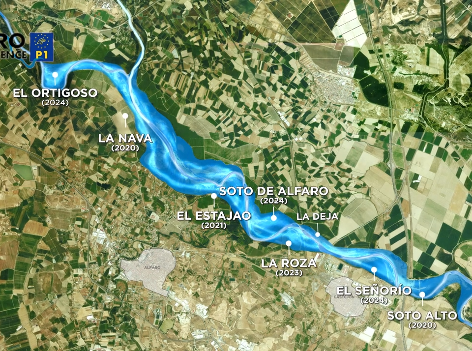 This intervention is part of Zone 1 of LIFE Ebro Resilience P1, in what is called the combined section of actions to mitigate the effects of floods and will allow the recovery of the functionality of the meander, helping to fulfill its role as a fluvial space.