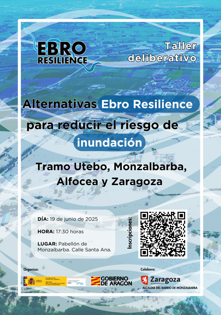 The Ebro Resilience Strategy will hold next Thursday, June 19, a public workshop to present the alternative to reduce the risk of flooding in Section 10 of the Ebro, which covers the course of the river as it passes through the municipality of Utebo and the surroundings of Monzalbarba and Alfocea to the city of Zaragoza. Organized by the Hydrographic Confederation of the Ebro, Government of Aragon and with the collaboration of the City Council of Zaragoza, through the Mayor’s Office of Monzalbarba, it will be held in the Pavilion of Monzalbarba, in Santa Ana Street.
