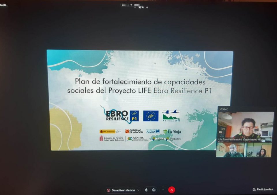 El Proyecto LIFE Ebro Resilience P1 presentó el pasado 15 de febrero, en una jornada en formato online, su Plan de Fortalecimiento de Capacidades que define el programa de actividades para todo el periodo de implantación del Proyecto, destinado a diversos públicos, que, entre otras cosas, fomentará una mejora del conocimiento, la motivación, organización e implicación de las personas en la reducción del riesgo de inundación.