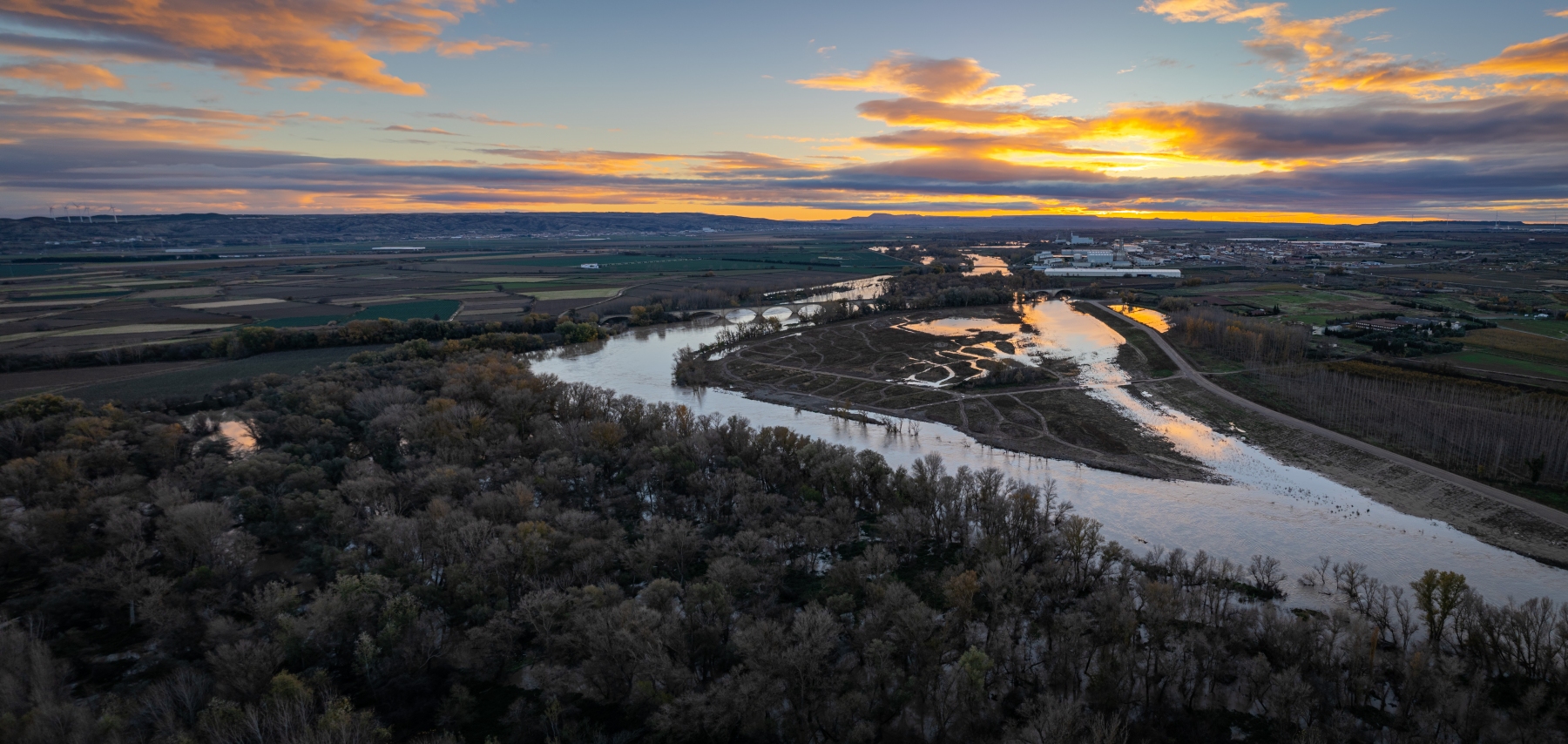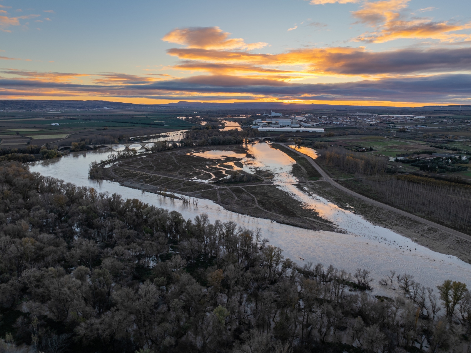 20231202 Crecida de caudales en el meandro recuperado. Vista al atardecer