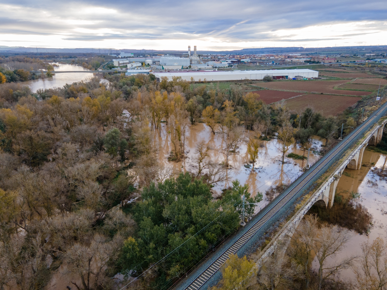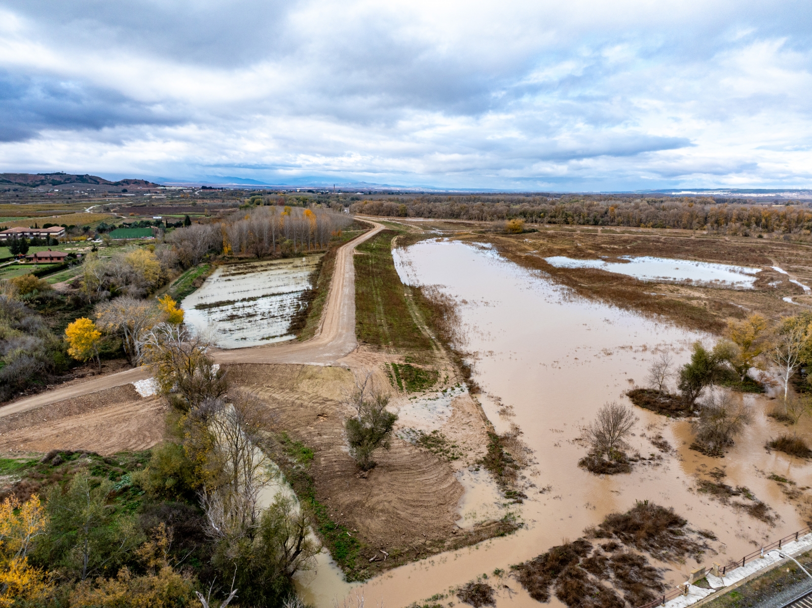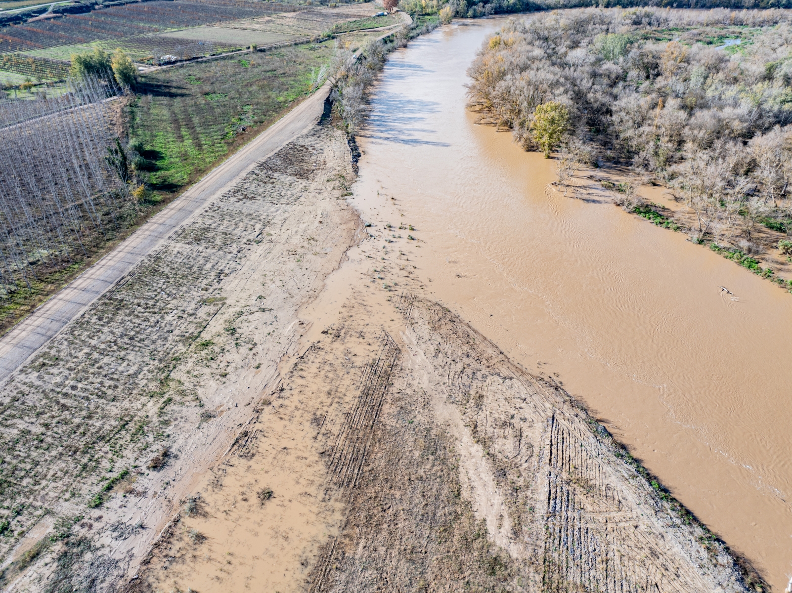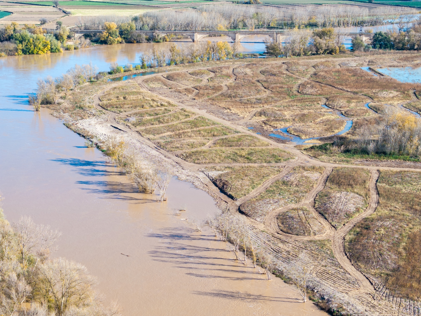 20231202 Crecida de caudales en el meandro recuperado. Vista aérea zona del puente del ferrocarril