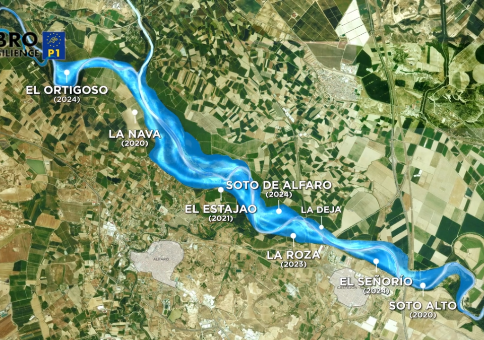 Una intervención que tendrá un efecto positivo en más de 500 hectáreas de uso agrícola, reduciendo su riesgo de inundación y que permitirá la recuperación de 60 hectáreas de espacio fluvial. En la Zona 1 del Proyecto LIFE Ebro Resilience P1, localizado entre las localidades de Alfaro, en La Rioja y Castejón, en Navarra, se están llevando a cabo una serie de medidas naturales de retención de agua, para la adaptación del tramo al riesgo de inundación, reduciendo así las afecciones.