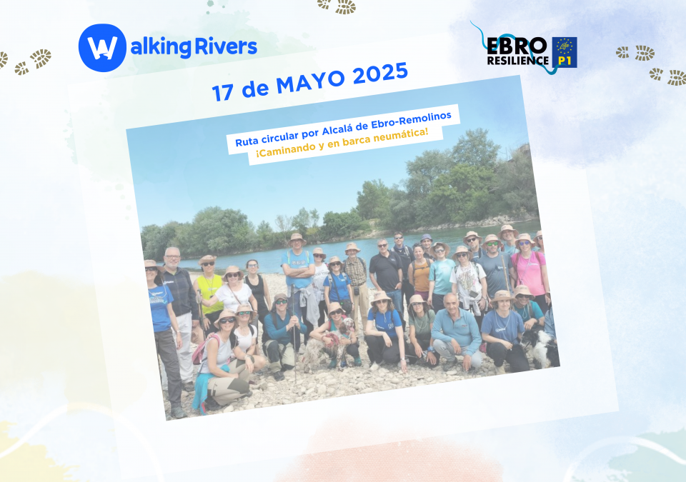 El proyecto LIFE Ebro Resilience P1 se suma por segundo año consecutivo a la iniciativa internacional Walking Rivers, organizando para el próximo 17 de mayo de 2025 una ruta circular a pie y en barca neumática que, principalmente, recorrerá término municipal de Alcalá de Ebro, pero también llegará a Remolinos.